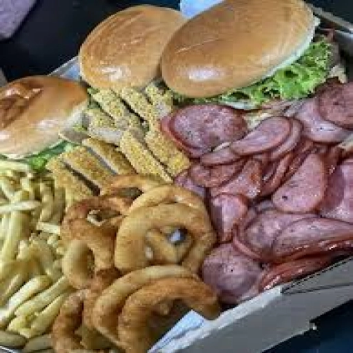 3 LANCHES, BATATA FRITA, CALABRESA ACEBOLADA E ONIONS.
