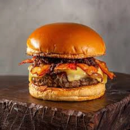 PÃO BRIOCHE, BLEND 180G, MOLHO ESPECIAL DA CASA, CHEDDAR FATIADO, BACON, CEBOLA CARAMELIZADA E CHEDDAR CREMOSO