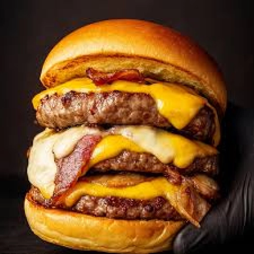 PÃO, 3 HAMBURGUERES, PURÊ DE BATATA, BACON, KETCHUP,