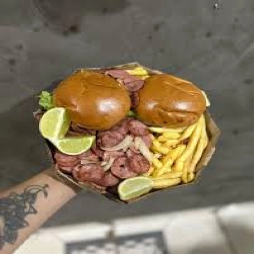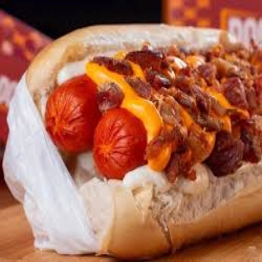 PÃO, KETCHUP, MAIONESE, MOLHO DA CASA, PURÊ DE BATATA, 2 SALSICHAS, CEBOLA ROXA, BACON, QUEIJO COALHO, MUSSARELA, TOMA... Ver completo